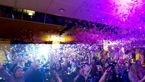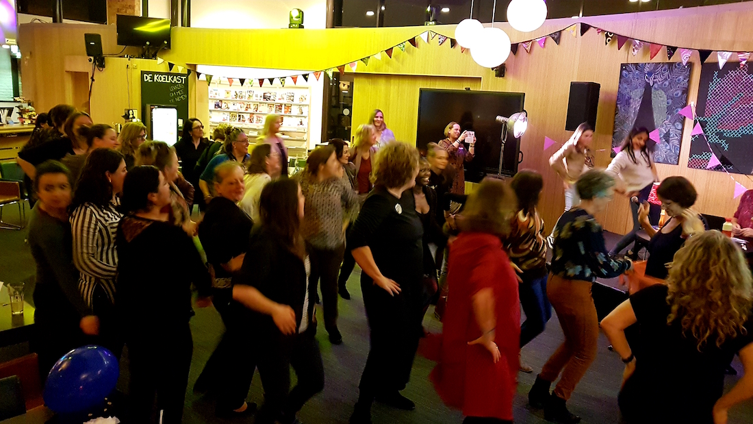 Zaterdagavond 7 maart was het feest in 't Mozaïek! Ruim 200 vrouwen genoten van het vijfjarig jubileum van dit evenement ter ere van Internationale Vrouwendag op 8 maart. Precies om 12 uur knalde de confetti dan ook over de feestende vrouwen die samen toostten op hun vrijheid en vrouwzijn.