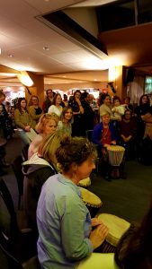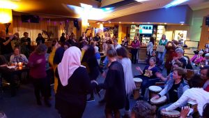 Zainab Osman opende vol enthousiasme de avond, waarnaartoe door het multiculturele koor van het Taalcafé. Daarna hadden de vrouwen de keuze uit 17 workshops variërend van weerbaarheid tot kaarsen creëren en van dansen tot hapjes maken. Vervolgens gingen de dames in gesprek over onderwerpen als sociale contacten, hobby's, powervrouwen en berust leven. Tegelijkertijd begon het feest in de foyer spontaan al met dansende en trommelende vrouwen. Na enkele mooie presentaties stond de dansvloer de hele avond vol op de wereldbeats van
