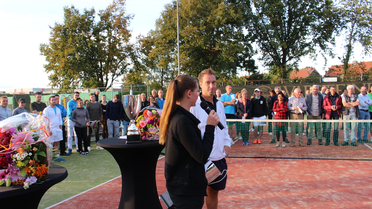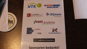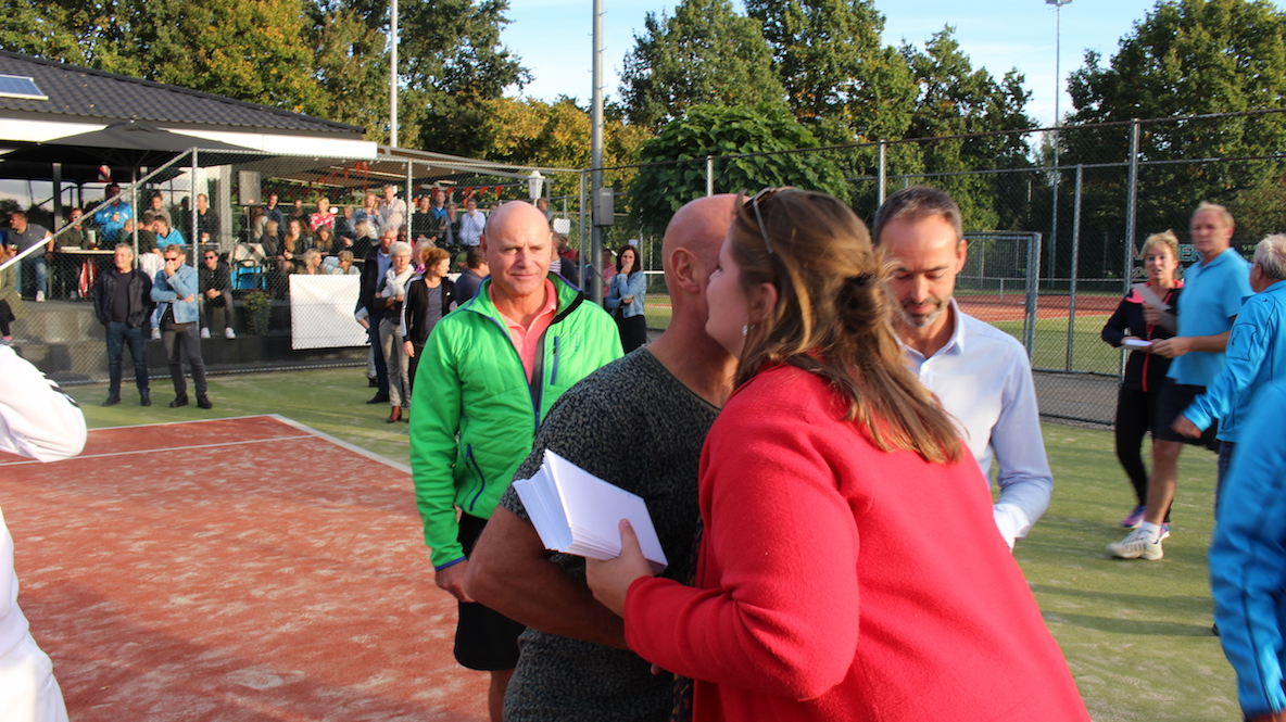 Tot slot: alle complimenten voor de organisatie en haar 70 vrijwilligers. Voor Wijchen is het WTK een unieke samenwerking tussen de tennisverenigingen onderling! Organisator en anmiator Piet Derks had aangegeven na 30 jaar ermee te stoppen en kreeg een gepast eerbetoon en een superapplaus van de vele aanwezigen! Piet, bedankt!