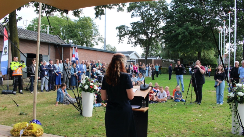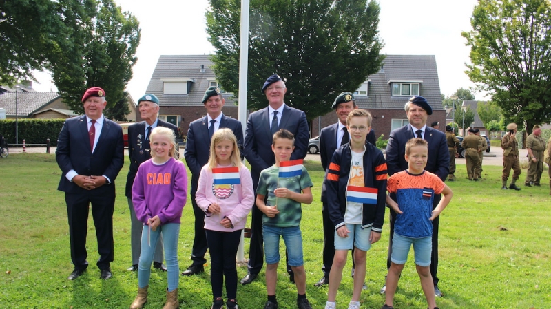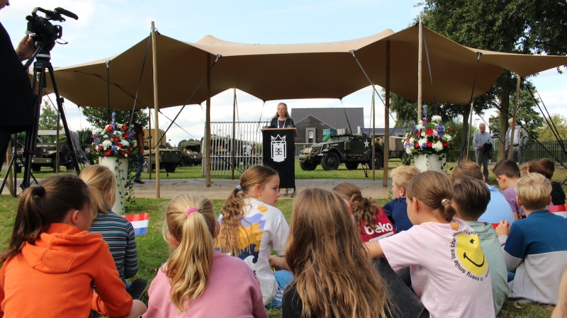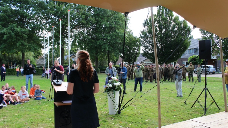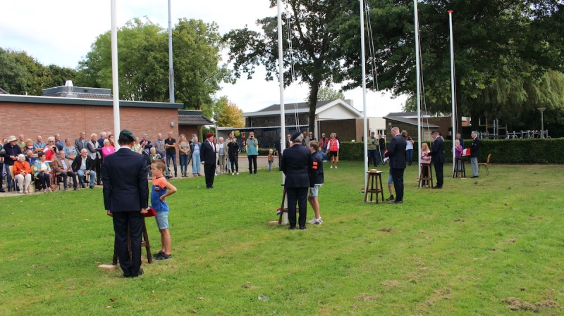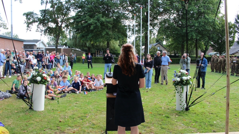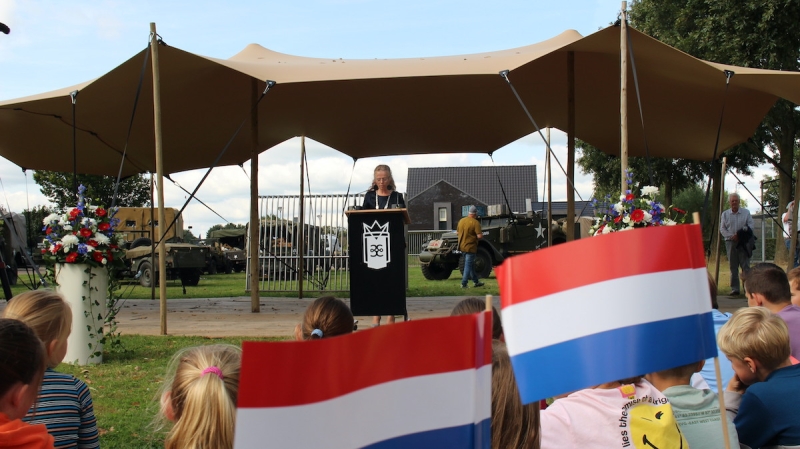 Op dinsdag 17 september was er bij Dorpshuis Balgoy een eerste herdenking. Dat was ook de dag dat wij in Wijchen in 1944 al bevrijd werden, 80 jaar geleden dus! Onze burgemeester Renske Helmer-Engelbert hield een indrukwekkende toespraak waarna de vlaggen, samen door veteranen en schoolkinderen gehesen werden. Er werden tevens Colors of Freedom-bloembollen aangeboden aan de schoolkinderen.