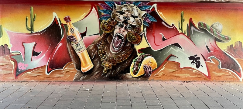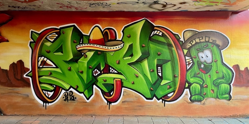 De Graffiti Hall of Fame Wijchen Noord (Veenhof/Woezik) is het afgelopen weekend weer voorzien van een laagje verf. Enkele graffiti-artiesten hebben de tunnel helemaal in het thema TEX MEX gepaint. Voor de mensen die het leuk vinden om deze in het echt te zien, gewoon eens een kijkje nemen daar. Ook zeker leuk voor een gave foto shoot!