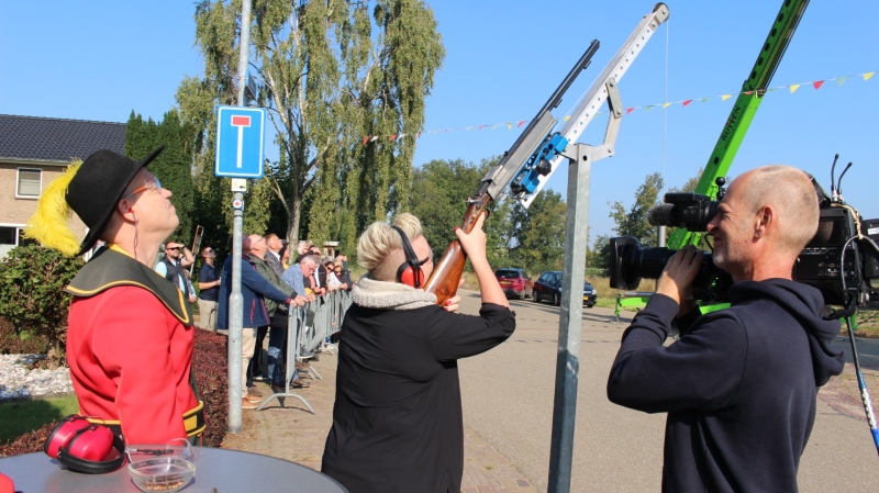 Zo was Ilse de Kleijn- Brands de eerste vrouwelijke schutter die een gooi deed naar het Koningsschap voor 3 jaar. “Ik wil de eerste vrouwelijke koning worden”, liet ze enthousiast weten. “Ik kan wel raak schieten hoor want in Neerlangel heb ik 'm al 3 keer naar beneden geschoten!”