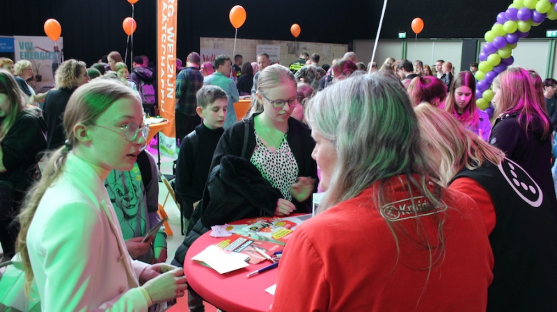 Na het openingswoord en een klap op de gong door wethouder Nick Derks uit Wychen zwermden de leerlingen uit langs de gesprekstafels.