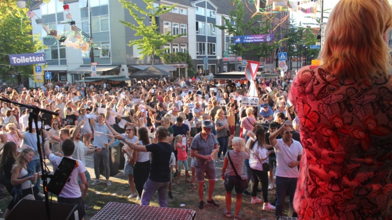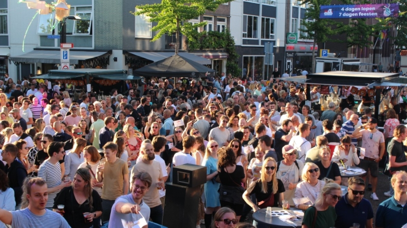 Gezellige drukte op de Roze Woensdag van de Vierdaagsefeesten!