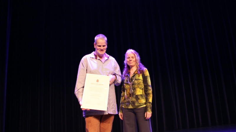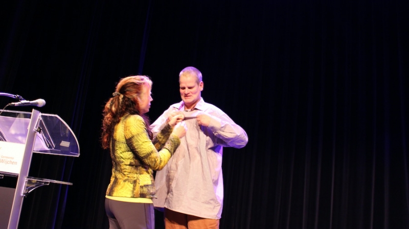 Op donderdag 5 januari ontving de heer (Frank) Van Maasdijk uit Wijchen een Zilveren Draagspeld. Burgemeester Renske Helmer-Englebert reikte deze aan hem uit tijdens de Nieuwjaarsbijeenkomst in de theaterzaal van ’t Mozaïek.